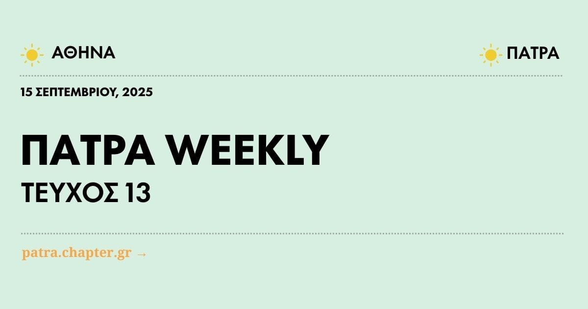 Ο Σεπτέμβριος αναδεικνύεται ως μήνας-ορόσημο για την Πάτρα και την ευρύτερη περιοχή, με έναν καταιγισμό πολιτιστικών, εκπαιδευτικών και αθλητικών εκδηλώσεων που τονώνουν την τοπική οικονομία και προβάλλουν την πόλη διεθνώς.