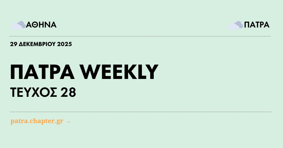 Αυτή την εβδομάδα, η Πάτρα μετρά αντίστροφα για τη νέα χρονιά με κέφι, εξορμήσεις και ένα πρόγραμμα γεμάτο αισιοδοξία και νέα πλάνα.