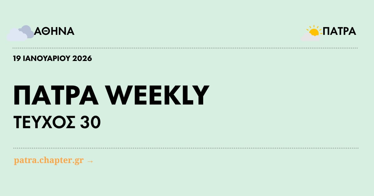 Η πόλη μπαίνει σε γιορτινούς ρυθμούς με την επίσημη έναρξη του Πατρινού Καρναβαλιού 2026. Στο πολιτιστικό πρόγραμμα ξεχωρίζει ο μονόλογος ‘Ο πρίγκιπας της οπισθογωνίας’ στο θέατρο act, ενώ μια ιδιαίτερη μουσική συνάντηση φέρνει μαζί τον Γιώργο Χατζηνάσιο και τον Στέφανο Κορκολή σε συναυλία για δύο πιάνα. Τον παλμό συμπληρώνει το Final 4 του Κυπέλλου Ελλάδας στην υδατοσφαίριση ανδρών, που φιλοξενείται στην πόλη.